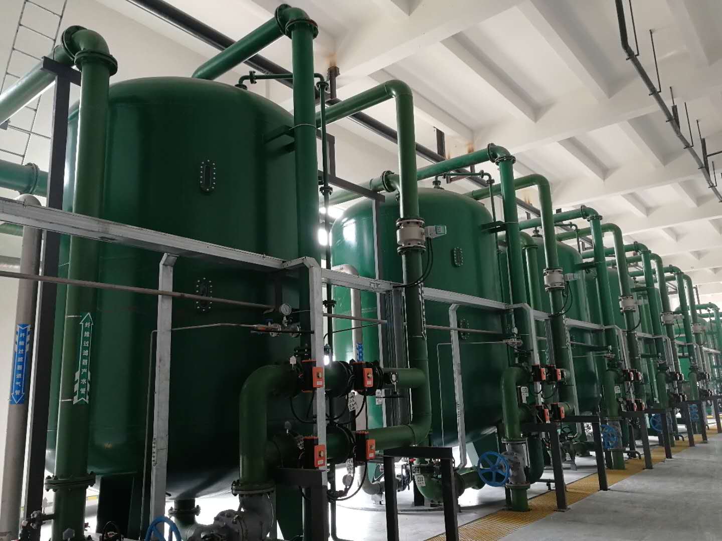 100,000m3/d市政水处理(给水工程)源水类型:地表水,使用工艺:常规处理+碳砂滤池+浸没式超滤;运行方式:负压抽吸/虹吸过滤;产水水质:浊度<0.1NTU,由于生活饮用水标准.