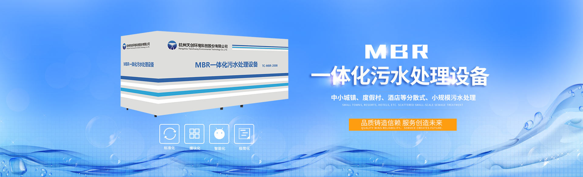 TCHE一体化污水处理系统是集AAO、MBR等水处理工艺于一体的高效污水处理系统,在生物反应器中维持高浓度的活性污泥,实现污染物的高效降解;以MBR膜组件取代传统工艺中的二沉池和过滤等深度处理工艺,以极小的占地获得极优的泥水分离效果。