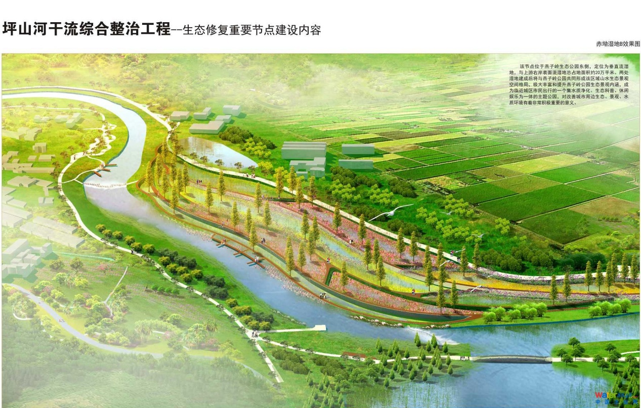 坪山河项目在政策引领、上位规划的基础上,创新性的提出了以水资源、水环境、水安全、水生态、水文化“五位一体”的治水理念和“治污、防洪、生态修复”+“城市建设”的“3+1”治水思路。