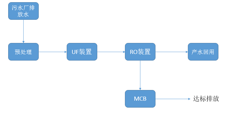 混凝后出水进入中间水池,由BAF提升泵提升至曝气生物滤池,进一步对污水中的有机物进行好氧生物降解。曝气生物滤池出水利用二氧化氯进行消毒,以满足回用排放标准。